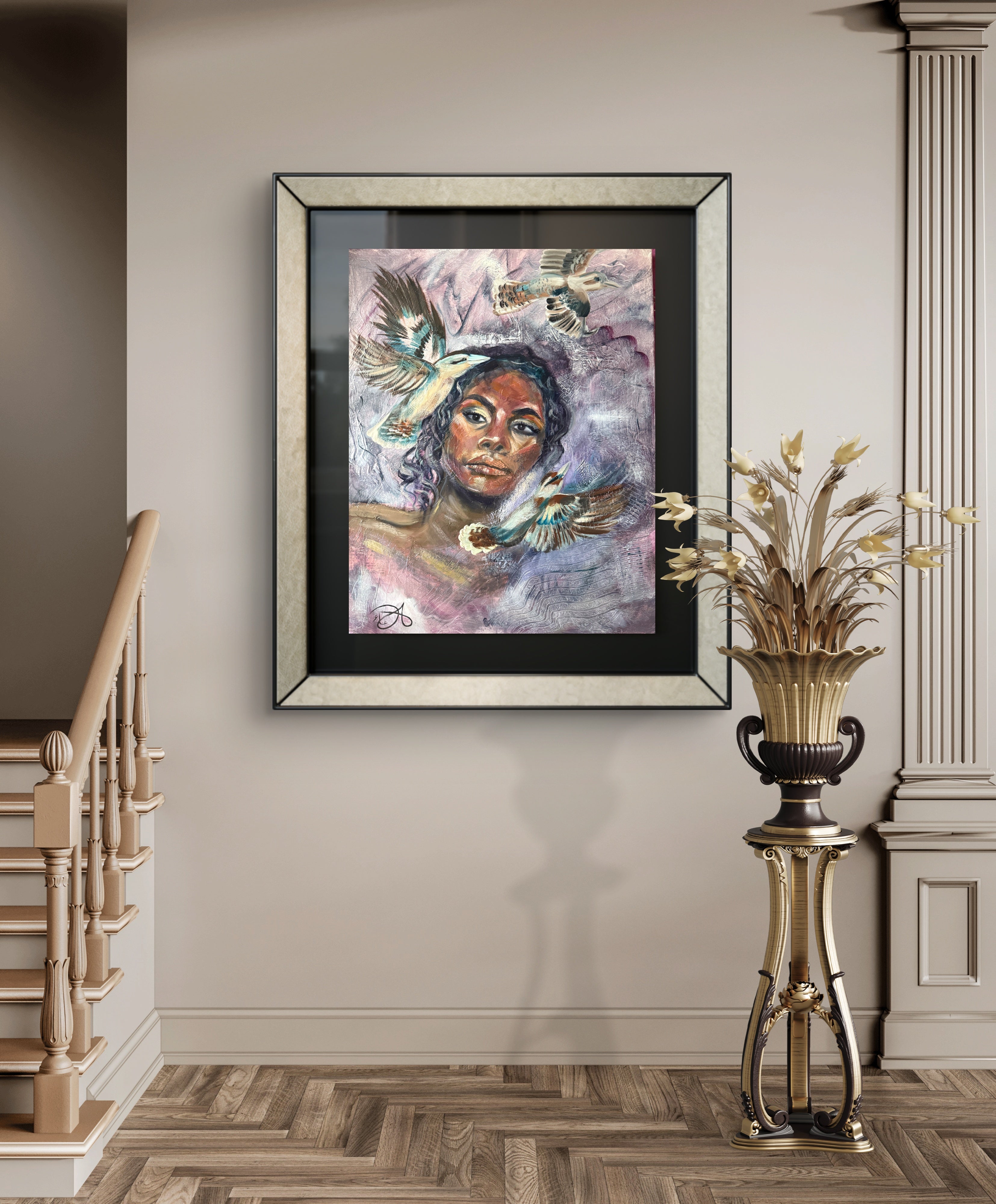 This artwork emerged from a place of love and reverence for the traditional custodians of this land. It is also a recognition of the sacred rhythms of nature and the presence of the native kookaburras, whose laughter carries a timeless song of the earth and the continuity of life. Through their song, the artwork celebrates the harmony between spirit, land, and all living beings.